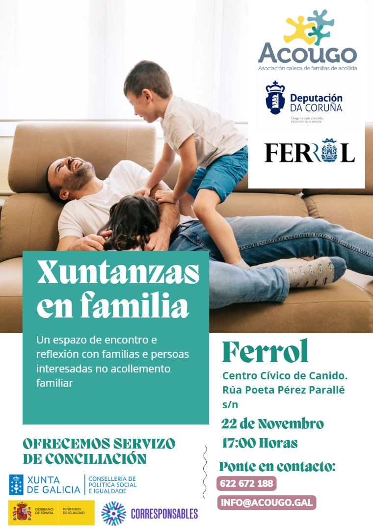 O vindeiro 22 de novembro en Ferrol teremos un espazo de encontro e reflexión con familias e con persoas interesadas no acollimento familiar.
